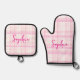 Personalized Pink Plaid Oven Mitt & Pot Holder Set