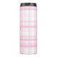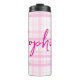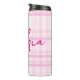 Cute pink plaid thermal tumbler with a custom name. Perfect for hot and cold drinks on the go with an aesthetic preppy style.