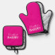 Personalized pink pot holder & oven mit for baker oven mitt & pot holder set