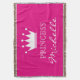 Personalized pink princess crown woven throw blanket. Personalizable name egant script typography. Cute girly decoration for women and girls. Customizable color. Make your own for sister, mom, mother, wife, daughter, granddaughter, aunt, grandma, baby, teen girl etc