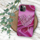 Contemporary faux shiny diamond heart on a bright hot pink colored printed image of wavy satin fabric. With room to customize or personalize with a monogram of your choice. Beautiful, modern, and cool cover for the trend-savvy and art-loving hip trendsetter, artsy motif lover who wants to protect their phone from dust and dirt, wear and tear. This design is available in Apple iPhone 6, 7, 8, 10 or X, XR, XS, 11, 12, 13 Mini, 14, 15 Plus, and Pro Max cellphone cases. Show off your style, look fashionable trendy, and feel stylish with a unique design on a mobile device accessory of your choice.