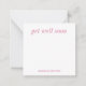 Personalized stationery enclosure notecard with a green gingham pattern in notes of dark deep and vibrant rose pink and bubble gum pink with the sentimental words "get well soon". Tuck it into a flower bouquet or meaningful gift. These minimal flower shop inspired enclosure cards bring a retro kitchen vibe to your most thoughtful moments.