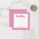 Personalized stationery enclosure notecard with a green gingham pattern in notes of dark deep and vibrant rose pink and bubble gum pink with the sentimental words "hello". Tuck it into a flower bouquet or meaningful gift. These minimal flower shop inspired enclosure cards bring a retro kitchen vibe to your most thoughtful moments.