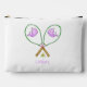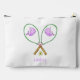 Keep your tennis essentials stylishly organized with this personalized accessory pouch featuring a fun preppy design of pink tennis rackets with purple whale head covers and three tennis balls. Add a name or monogram to make it uniquely yours — perfect for storing grips, wristbands, makeup, or small on-the-go items inside your tennis tote or bag.