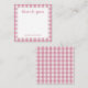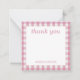 Personalized stationery enclosure notecard with a pink gingham pattern in notes of dark deep and vibrant rose pink bubble gum and white with the sentimental words "thank you". Tuck it into a flower bouquet or meaningful gift. These minimal flower shop inspired enclosure cards bring a retro kitchen vibe to your most thoughtful moments.