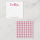Personalized stationery enclosure notecard with a pink gingham pattern in notes of dark deep and vibrant rose pink bubble gum and white with the sentimental words "hello". Tuck it into a flower bouquet or meaningful gift. These minimal flower shop inspired enclosure cards bring a retro kitchen vibe to your most thoughtful moments.