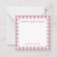Personalized stationery enclosure notecard with a pink gingham pattern in notes of dark deep and vibrant rose pink bubble gum and white with the sentimental words "HAPPY BIRTHDAY". Tuck it into a flower bouquet or meaningful gift. These minimal flower shop inspired enclosure cards bring a retro kitchen vibe to your most thoughtful moments.
