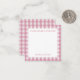 Personalized stationery enclosure notecard with a pink gingham pattern in notes of dark deep and vibrant rose pink bubble gum and white with the sentimental words "CONGRATULATIONS". Tuck it into a flower bouquet or meaningful gift. These minimal flower shop inspired enclosure cards bring a retro kitchen vibe to your most thoughtful moments.
