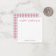Personalized stationery enclosure notecard with a pink gingham pattern in notes of dark deep and vibrant rose pink bubble gum and white with the sentimental words "HAPPY BIRTHDAY". Tuck it into a flower bouquet or meaningful gift. These minimal flower shop inspired enclosure cards bring a retro kitchen vibe to your most thoughtful moments.