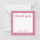 Personalized stationery enclosure notecard with a pink pin stripe pattern in notes of dark deep and vibrant rose pink bubble gum and white with the sentimental words "thank you". Tuck it into a flower bouquet or meaningful gift. These minimal flower shop inspired enclosure cards bring a retro kitchen vibe to your most thoughtful moments.