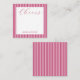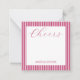 Personalized stationery enclosure notecard with a pink pin stripe pattern in notes of dark deep and vibrant rose pink bubble gum and white with the sentimental words "Cheers". Tuck it into a flower bouquet or meaningful gift. These minimal flower shop inspired enclosure cards bring a retro kitchen vibe to your most thoughtful moments.