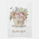 Personalized Pink Yellow Blue Flowers in Teacup Kitchen Towel