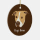 Lightweight, smooth, pure white ornament with nice sheen. Perfect size to be seen from across the room ... and to attract closer inspection! Price was great for ordering enough for the whole family! Clear, bold black design just as requested. Matches the order exactly. Just so nice!
