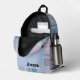 Lightweight and durable, our custom all-over-print Backpack is just what you need. The spacious interior is ideal for travel, school, gym, or any mobile storage need. Bring your stuff with you in style! Features Adjustable padded shoulder straps, two chambers on the inside for laptop storage, mesh side pockets and an identification label.