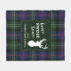 Cute home sweet home Christmas blanket you can easily customize by clicking the "Personalize" button, Featuring deer silhouette and clan Sutherland tartan in green, and purple check.