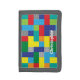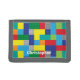 A pattern of square and rectangle plastic toy bricks. Personalize this boy's wallet with a name or short phrase.