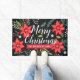 Welcome guests with holiday cheer using this personalized doormat featuring a vibrant floral design. The bold red poinsettias, green leaves, and white berries pop against the black background, creating a festive and inviting atmosphere. Add a personal touch with your family name or holiday message. This durable doormat is perfect for adding a touch of warmth and joy to your porch or entryway throughout the Christmas season.