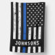Show your support and pride for our Police with this Thin Blue Line house flag. American flag in Police Flag colors , distressed design. Personalize with Family name. This police flag is perfect for police and law enforcement families and all who support them. COPYRIGHT © 2021 Judy Burrows, Black Dog Art - All Rights Reserved. Personalized Police Flag Thin Blue Line House Flag
