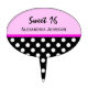 Adorable pink, black and white polka dot cake pick. Personalize it by adding the birthday girls name.