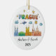 A Personalized Travel Souvenir Ornament designed to celebrate your unforgettable trip. Whether you went for work, enjoyed a romantic getaway, or took part in a school exchange program, this ornament commemorates a special moment you’ll always cherish and want to remember for years to come. This vibrant skyline ornament featuring cityscapes, dreamy clouds, and twinkling stars. Perfect for travelers and city lovers alike!