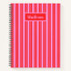 Personalized Preppy Hot Pink and Red Stripes Notebook