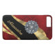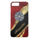 Personalize this pretty chic and elegant girly dark red vintage damask pattern design, with a crystal rhinestone jewel bling and black and gold swirl ribbon pattern graphic with her name or monogram initials to the customizable text templates to create a special unique stylish case to protect your device. This chic elegant sophisticated feminine red retro damask graphic design, would be great for women who like romantic red and jewelry easily add your own name or text to the stylish elegant color ribbon template. Visit the CUSTOMIZEDSKINS STORE for matching cases. PLEASE NOTE the golden color is not metallic, and does not contain real diamonds or crystals.
