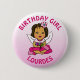 Adorable "Birthday Girl" button with red and red Hispanic or African American fairy. Whimsical folk art style birthday button.