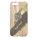 Personalized dark brown rustic faux wood grain and pretty feminine chic elegant modern gold swirl graphic and girly vintage diamond crystal rhinestone bling jewels. Easily add your name or monogram initials to create your own custom monogrammed design for her. PLEASE NOTE the golden color is not metallic.
