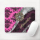 Pretty bright fuchsia pink color and black personalized feminine girly vintage damask pattern and modern silver pewter gray color swirl design with monogram name or text initial templates and faux diamond crystal rhinestone antique jewel graphic. Easily create your own unique colorful personal custom monogrammed chic elegant tradition design product for her. PLEASE NOTE the silver grey color is not metallic or the gemstones real.