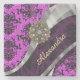 Pretty bright purple or magenta and black personalized feminine girly vintage damask pattern and modern silver pewter gray color swirl design with monogram name or text initial templates and faux diamond crystal rhinestone antique jewel graphic. Easily create your own unique colorful personal custom monogrammed chic elegant tradition design product for her. PLEASE NOTE the silver grey color is not metallic or the gemstones real.