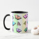 Pretty pink, purple, yellow, green and blue butterfly coffee mug.