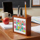 Add personality to your classroom or office with this colorful personalized pencil holder. Featuring bright, playful school supply illustrations and your custom name, this desk organizer is perfect for teachers, principals, and educators who love cheerful workspace decor.