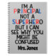 Celebrate the superpowers of school leadership with this personalized spiral notebook! Featuring the playful phrase "I'm a principal, not a superhero, but I can see why you might be confused," this notebook is a perfect blend of humor and practicality. Ideal for jotting down notes, plans, or daily reminders, it makes a great gift for principals who manage it all with style and grace. Personalize it with your name for a unique touch, and carry a bit of motivation with you wherever you go!