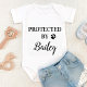 Protected By, Dog Security ! Let everyone know of your best dog and newly appointed guard dog in the welcoming home of your new baby with this cute dog baby clothes. “Protected By...your dogs name" with paw print. Perfect baby shower gift to a dog mom, this dog lover baby bodysuit will be a favorite! COPYRIGHT © 2020 Judy Burrows, Black Dog Art - All Rights Reserved. COPYRIGHT © 2020 Judy Burrows, Black Dog Art - All Rights Reserved. Personalized Protected By Dog Baby Bodysuit