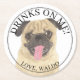 Personalized Pug Dog Wedding Round Paper Coaster