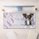 LOVE this desk mat! It's large! It fits across my desk. No need for a small mouse pad now! Color and print are excellent. Quality seems to be excellent too. Delivery was about 3 days sooner than expected. I think this is one of my favorite Zazzle products! Excellent. The color is vibrant and true to what I expected.