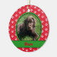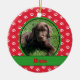 Personalize this paw print photo ornament with your pet's photo and name. There's a paw print background in festive holiday colors.