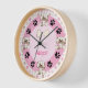 Personalized Puppy Dog, Paw Prints, Pink Polk Dots Clock