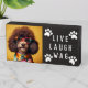 Capture the essence of your cherished fur baby with our personalized puppy love wooden box sign, a modern and adorable addition to your home decor. This custom-designed piece features a sweet quote, "Live. Laugh. Wag.," in simple white sans serif typography, perfectly complemented by a customized photograph on the left side of the decorative box. Replace the placeholder photo with your own beloved pet's picture, creating a heartfelt tribute to your furry friend. This artwork is sure to add a special touch to your home decor, celebrating the unconditional love and joy your pet brings into your life.