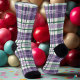Step into charming elegance with these personalized purple and green tartan plaid socks. Featuring a soft checkered pattern with vibrant purple and fresh green tones, these socks make an excellent birthday gift or unique accessory. Add your name or custom text for a truly one-of-a-kind piece. Designed for comfort and durability, these socks blend modern style with timeless tartan appeal, perfect for any special celebration.