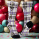 Celebrate with bold elegance in these personalized purple and yellow tartan plaid socks. Featuring a unique checkered pattern in vibrant purple and yellow tones with black and white accents, these socks make the perfect birthday gift or stylish accessory. Customize them with your name or text for a truly one-of-a-kind piece. Designed for comfort and durability, these socks combine modern flair with timeless tartan charm, perfect for any special occasion.