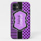 Personalized Purple, Black Striped Polka Dots Case-Mate iPhone Case