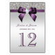 Personalized Purple Faux Bow Silver Sequins Table Number