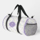 Travel in style with this elegant personalized floral duffle bag. Featuring a soft botanical pattern in calming lavender and green tones, this bag blends beauty and practicality for everyday use or weekend getaways. The classic lavender medallion showcases a personalized initial and name, adding a refined custom detail that makes this piece uniquely yours.