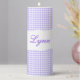 Personalized Purple Gingham Check Custom Name Pillar Candle