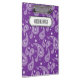 Pretty purple and white paisley print clipboard with a white and black vintage banner area that you can easily customize with your name or initials.