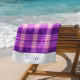 This trendy and preppy plaid beach towel features a vibrant mix of purple and pink hues.