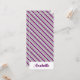 This personalized bookmark features multicolorec stripe pattern in pink, purple, black, and white with a custom name in matching purple script font at the bottom. On the back side there is the same pattern, but without the name. You can customize the font style and color of text in the Design tool.