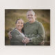 There's something about picking up the pieces and assembling a personalized photo jigsaw puzzle! The design incorporates a calligraphy quote, "Together they built a life they lovedt" in white that can be easily customized for a personal touch.