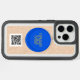Sleek iPhone 15 Pro Max case featuring a logo and a prominent QR code for easy scanning and stylish protection.